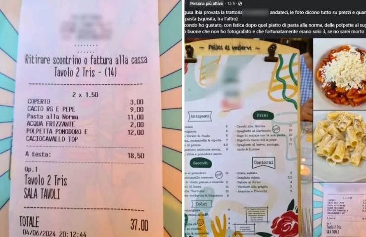 L’uomo ha raccontato di aver ordinato due primi piatti – una cacio e pepe e una pasta alla norma – oltre a un secondo, delle polpette al sugo, accompagnando il tutto con una bottiglia d’acqua. Il conto totale? 37 euro, ovvero 18,50 euro a persona.