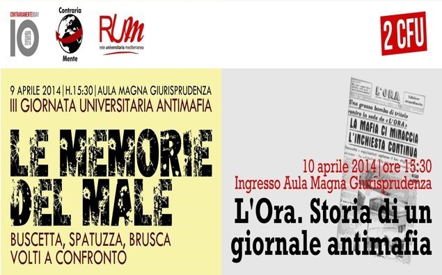 Nel pomeriggio di mercoledì, dalle 16.00, nell’aula magna di Giurisprudenza, si terrà la presentazione dell’opuscolo Le memorie del male. A illustrare il fascicolo, realizzato dagli studenti e incentrato sulle figure dei collaboratori di giustizia Spatuzza, Brusca e Buscetta, saranno l’avvocato Giovanni Chinnici, figlio del giudice Rocco; Corrado De Rosa, psichiatra e scrittore; Giuseppe Di Chiara, professore di diritto processuale penale; Nino Di Matteo, sostituto procuratore presso la DDA di Palermo, e Nelli Scilabra, assessore regionale all’istruzione e alla formazione professionale. A moderare il dibattito Lorenzo Baldo, giornalista e vicedirettore di Antimafia2000.