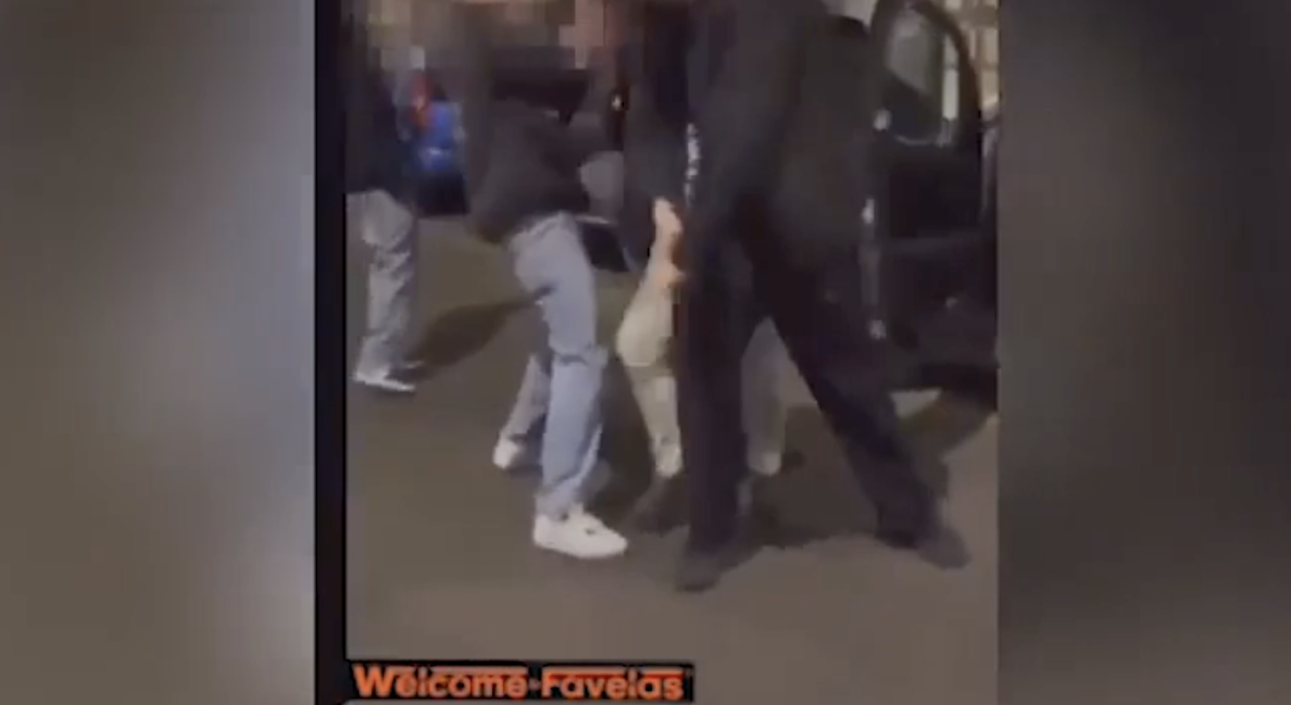 Agente della polizia accerchiato e picchiato dal branco, parte un colpo di pistola – VIDEO