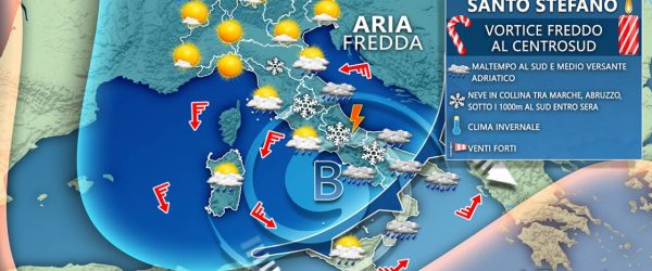 Correnti artiche irrompono sul Mediterraneo generando un vortice di bassa pressione sull’Italia con maltempo e … Leggi tutto Allerta Meteo: Santo Stefano freddo e gelo. Arriva la neve