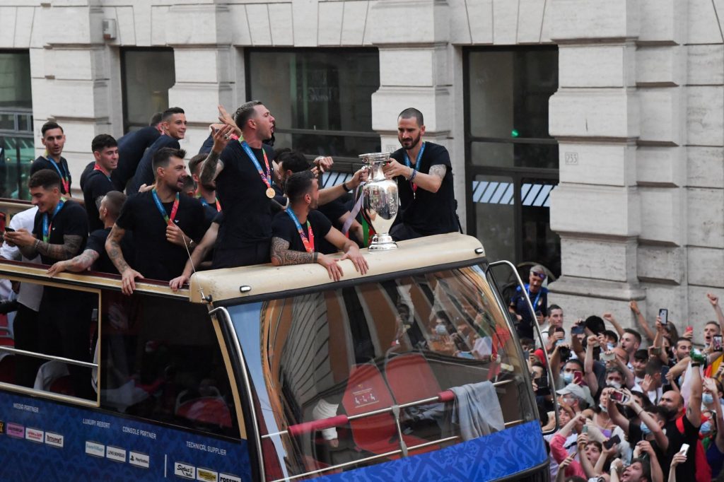 Caroselli e festeggiamenti in strada, Roma esplode per la vittoria della Nazionale Azzurra a Wembley ai rigori contro l’Inghilterra. Dopo l’incontro a Palazzo Chigi con il premier Mario Draghi, gli azzurri sono partiti per un giro tra le vie di Roma su un pullman scoperto, per ricevere l’omaggio e l’abbraccio di centinaia di tifosi. Come spiegato dallo stesso Leonardo Bonucci, i giocatori della nazionale hanno voluto fortemente e ottenuto un tour tra le vie del centro di Roma su un pullman scoperto.