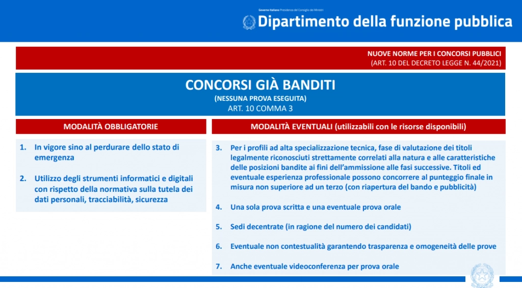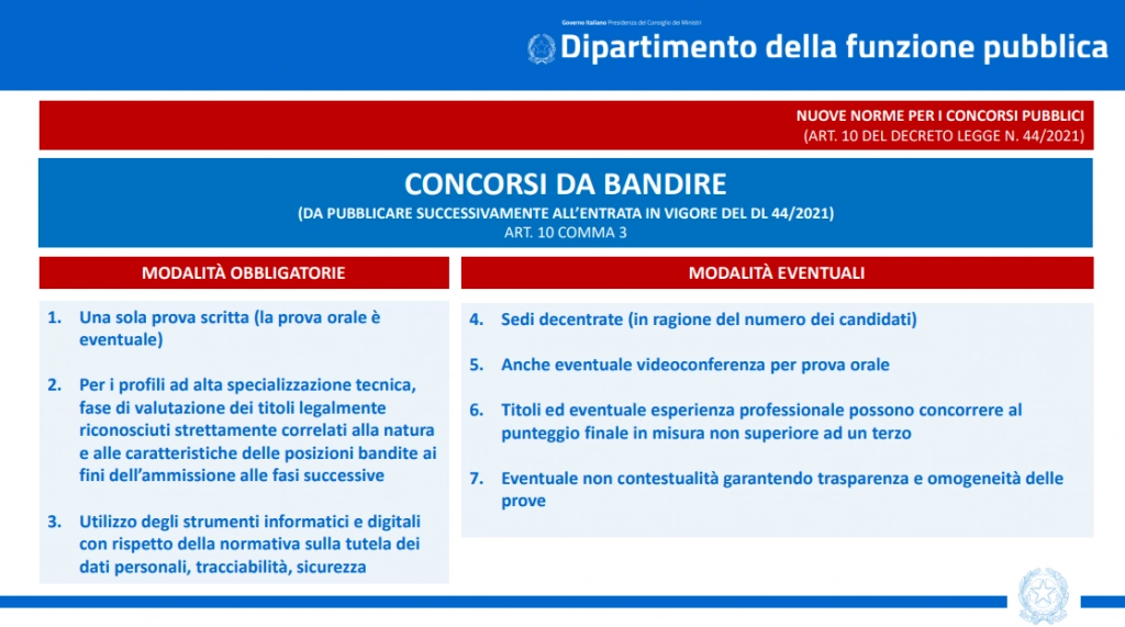 L’articolo 10 del decreto legge 44/2021 (“decreto Covid”), contenente la riforma dei concorsi pubblici è legge.