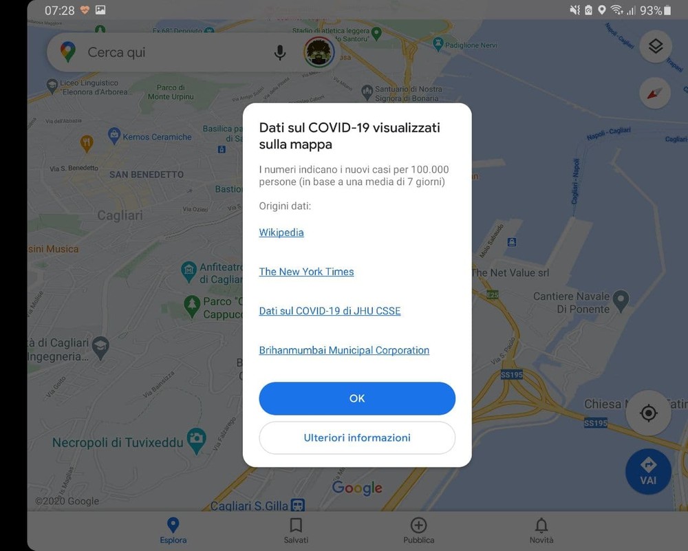 Google Maps e Coronavirus: I dati includono i casi confermati e probabili