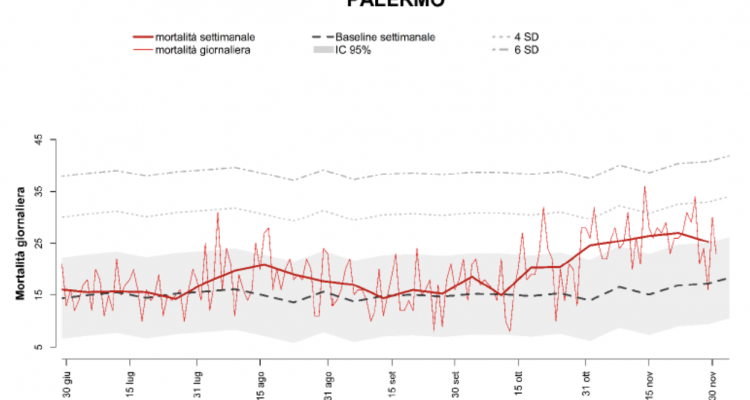 Nel mese di novembre i decessi rilevati a Palermo sono stati 789, contro una media degli ultimi 5 anni pari a 480 (+309 decessi, pari a +64%).