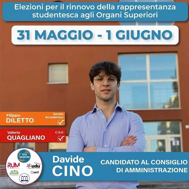 Per il Consiglio di Amministrazione, il candidato dell’associazione Intesa Universitaria, Davide Cino dichiara: