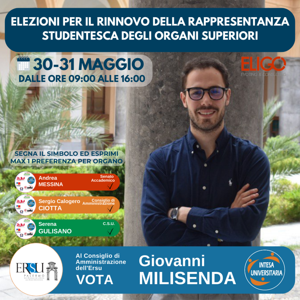 Per il Consiglio di Amministrazione dell’Ente Regionale per il diritto allo Studio Universitario, il candidato dell’associazione Intesa Universitaria, Giovanni Milisenda dichiara: