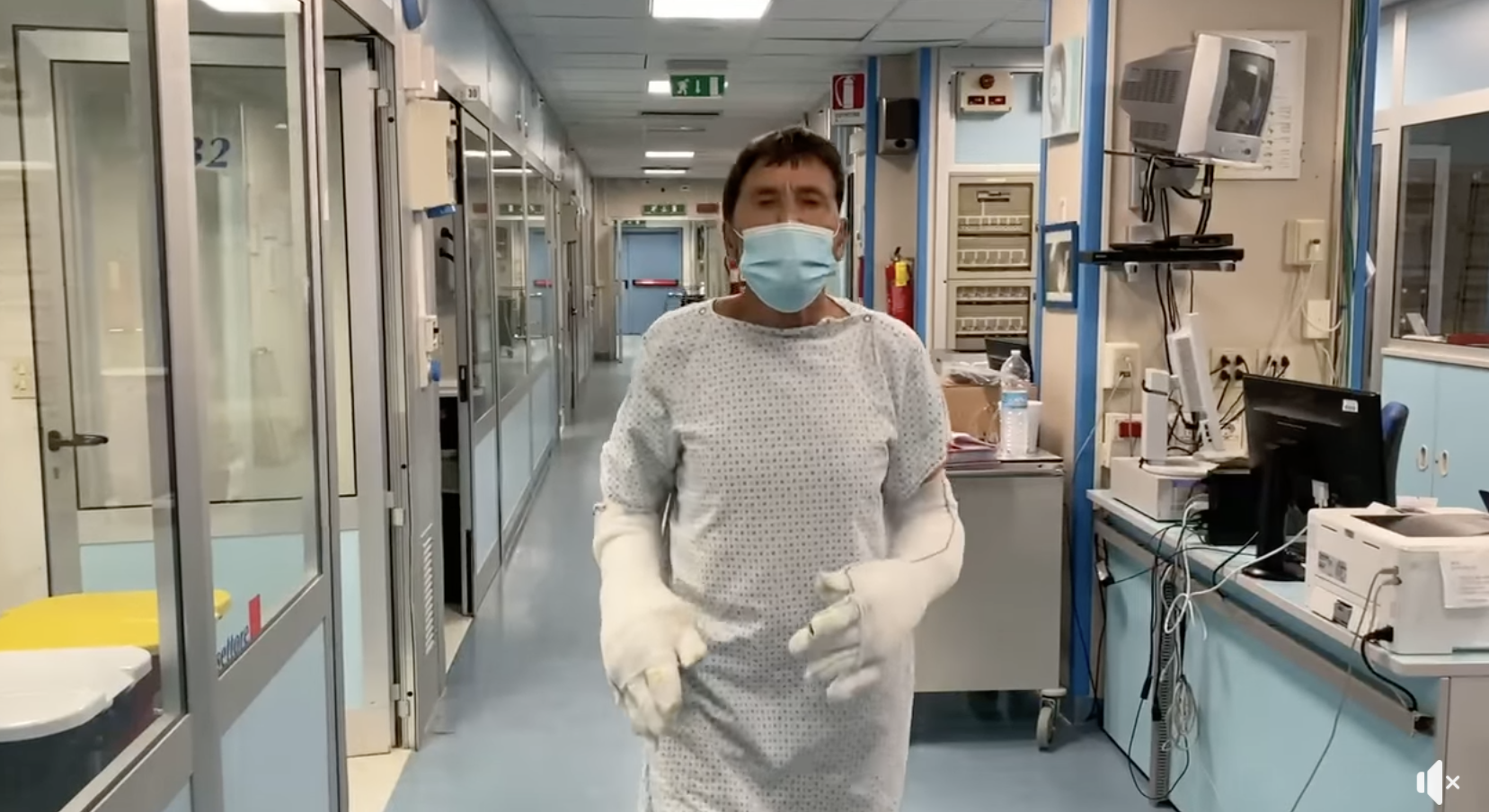 Gianni Morandi e le mani ustionate, il VIDEO in ospedale: ecco come sta dopo l’incidente