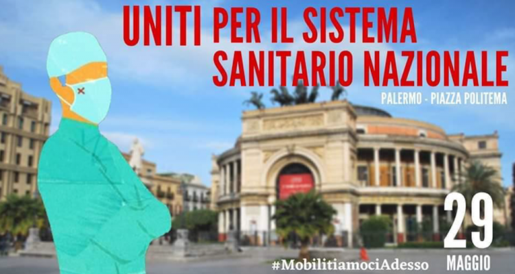 Nel rispetto del DPCM che autorizza le manifestazioni in forma statica, a Palermo il 29 Maggio dalle ore 10.00 alle ore 13.30 muniti di camice e mascherina, nel rispetto delle distanze di sicurezza e della salute che ogni giorno tutelano, i Giovani Medici Palermitani, gli eroi in corsia di questa Pandemia, scenderanno in Piazza Politeama (Ruggiero Settimo) uniti per il Sistema Sanitario Nazionale.