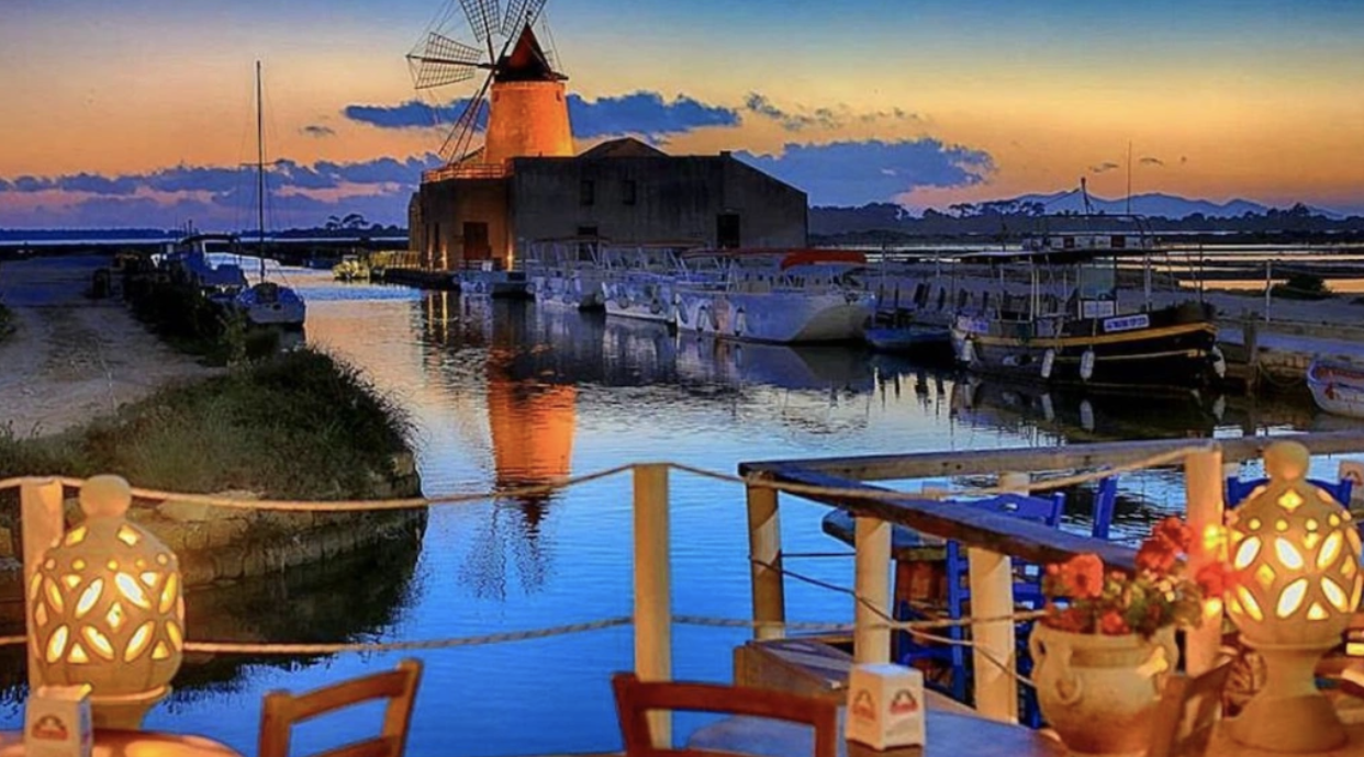 Nel Trapanese c’è un posto straordinariamente suggestivo da cui godere di un tramonto da togliere il fiato. Stiamo parlando delle Saline di Marsala, più precisamente la Riserva dello Stagnone. Le mille sfumature che riflettono sulla laguna danno un colpo d’occhio incredibile. A rendere tutto ancora più magico è la presenza di due caratteristi mulini a vento.