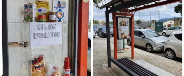 La pensilina Amat diventa l’offertorio dei palermitani, l’idea per aiutare i più bisognosi – FOTO