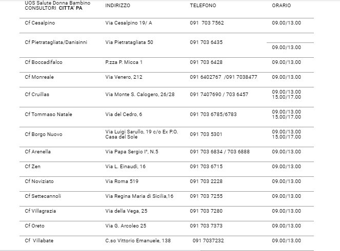Inoltre come è possibile vedere dalla foto i Consultori palermitani in cui sarà possibile fare il Pap Test, per le donne dai 25 ai 64 anni, sono sparsi per la città. Cruillas, Boccadifalco, Cesalpino, Settecannoli, Oreto , Villabate, Zen, Arenella e tanti altri.