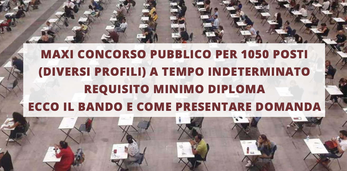 Maxi Concorso per Diplomati: 1050 Posti (diversi profili) a Tempo Indeterminato. Ecco il Bando e Come presentare Domanda