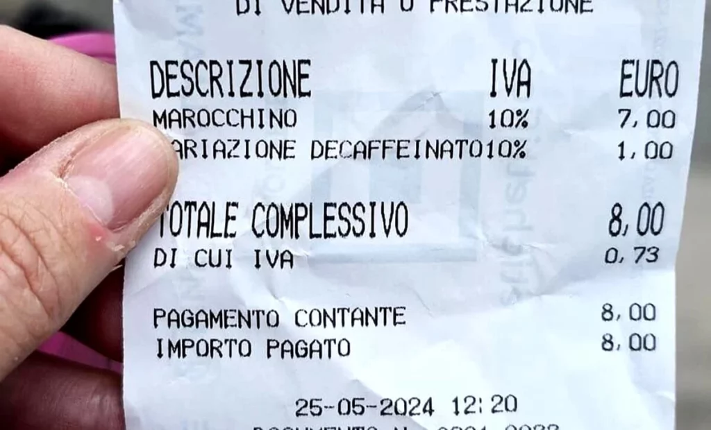 Cliente ordina un caffè in un bar in centri, ma all’arrivo dello scontrino rimane senza parole, costa quanto una pizza.