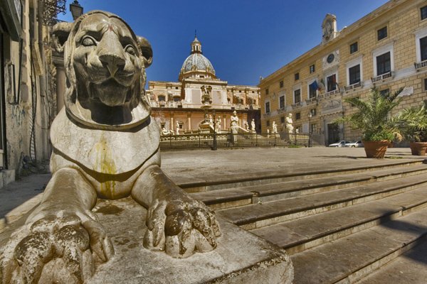 In una delle piazza più belle di Palermo atti vandalici ai danni di una statua. Si tratta di una delle due sfingi leonine della Piazza Pretoria di Palermo, sede del palazzo comunale, imbrattata dai vandali con la vernice a spray, deturpando la bellezza dei “guardiani” realizzati nel 1877 dallo scultore palermitano Domenico Costantino.