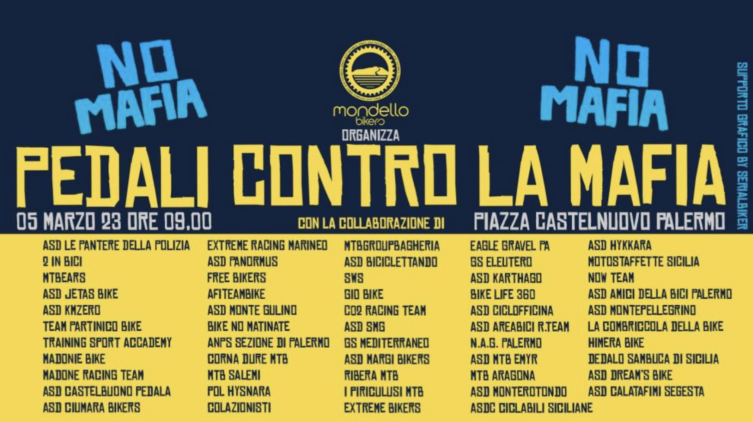 Pedali contro la mafia, è una festa su due ruote, una pedalata ecologica per le vie simbolo della città di Palermo, per dire ancora una volta No alla Mafia.