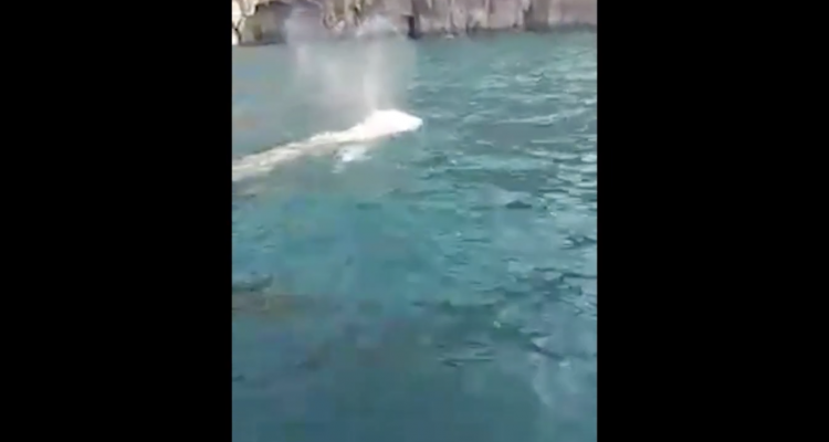 Raro esemplare di balena grigia si fa accarezzare dai pescatori, il video dell’avvistamento