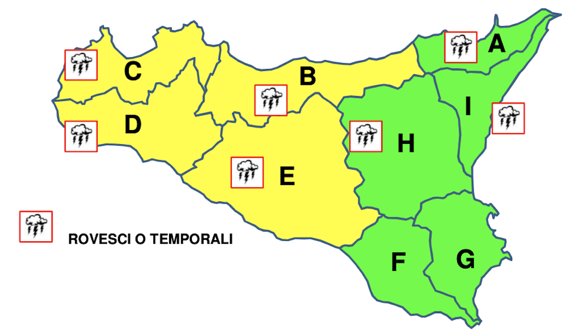 La protezione civile ha emanato un avviso meteo con livello d’allerta giallo per otto regioni, compresa la Sicilia. «L’avviso prevede dalla mattinata di oggi, lunedì 16 novembre, precipitazioni, a prevalente carattere di rovescio o temporale, su Umbria, Marche, Lazio, Abruzzo settentrionale e Campania, in estensione, dal pomeriggio, alla Basilicata occidentale. I fenomeni – prosegue la nota – saranno accompagnati da rovesci di forte intensità, locale attività elettrica e forti raffiche di vento. Sulla base dei fenomeni previsti è stata valutata per la giornata odierna, lunedì 16 novembre, allerta gialla sull’intero territorio di Umbria, Lazio, Marche, Abruzzo e su alcuni settori di Molise, Campania, Basilicata e Sicilia».