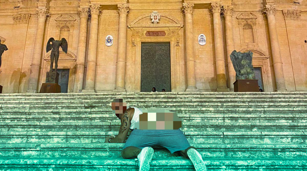 Un turista di 37 anni, residente a Milano ma di origini calabresi, la sera del 17 agosto è salito sulla scalinata della Cattedrale di Noto, in pieno centro storico, e si è abbassato i pantaloncini mostrando i glutei.