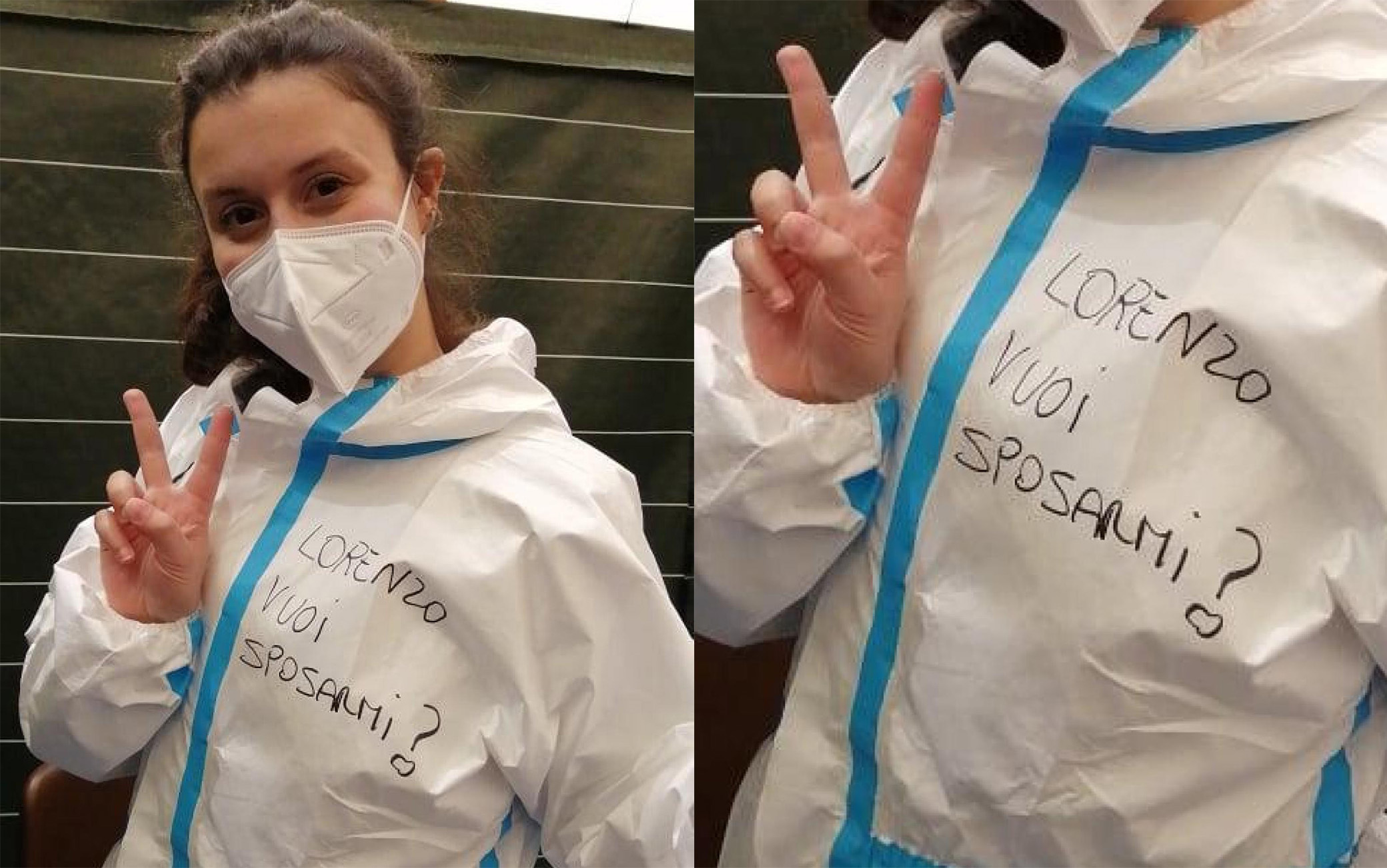 Da poche ore è virale la foto della giovane Chiara Vangeli, infermiera dell’Asst Valle Olona. Nello scatto compare la scritta sulla tuta anti-contagio: “Lorenzo, mi vuoi sposare?”. Una proposta di matrimonio a tutti gli effetti.