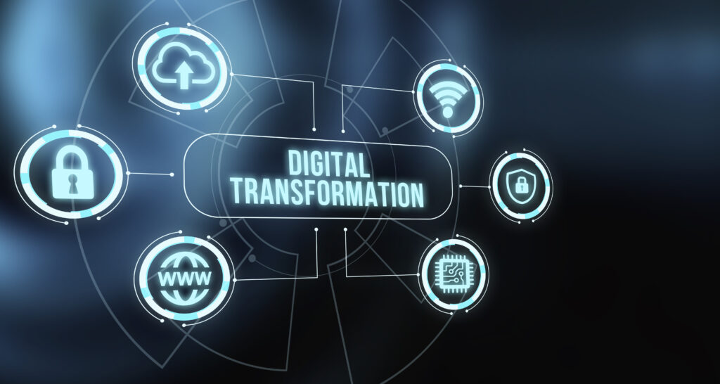 Internet, business, Technology and network concept.Concept of digitization of business processes and modern technology. Digital transformation 3d illustration