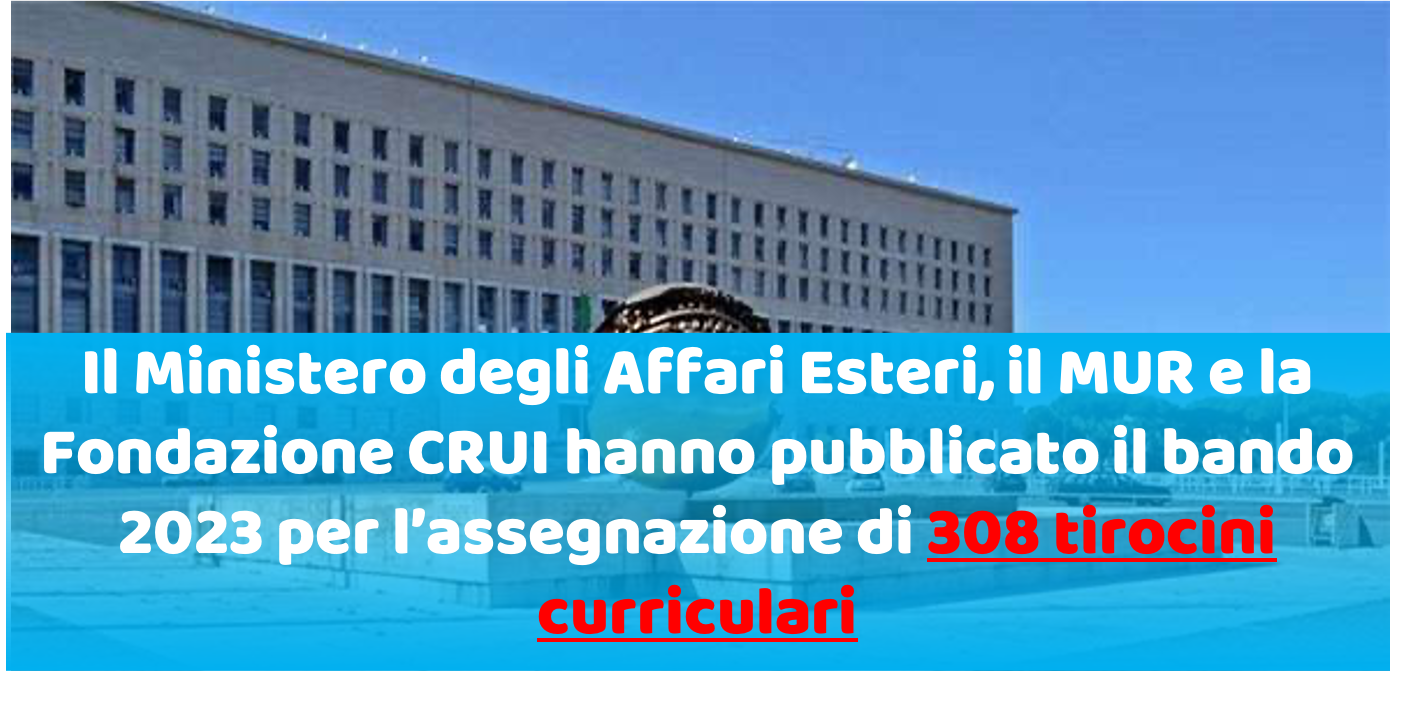 308 Tirocini formativi Ministero degli Esteri 2023, Bando MUR e CRUI