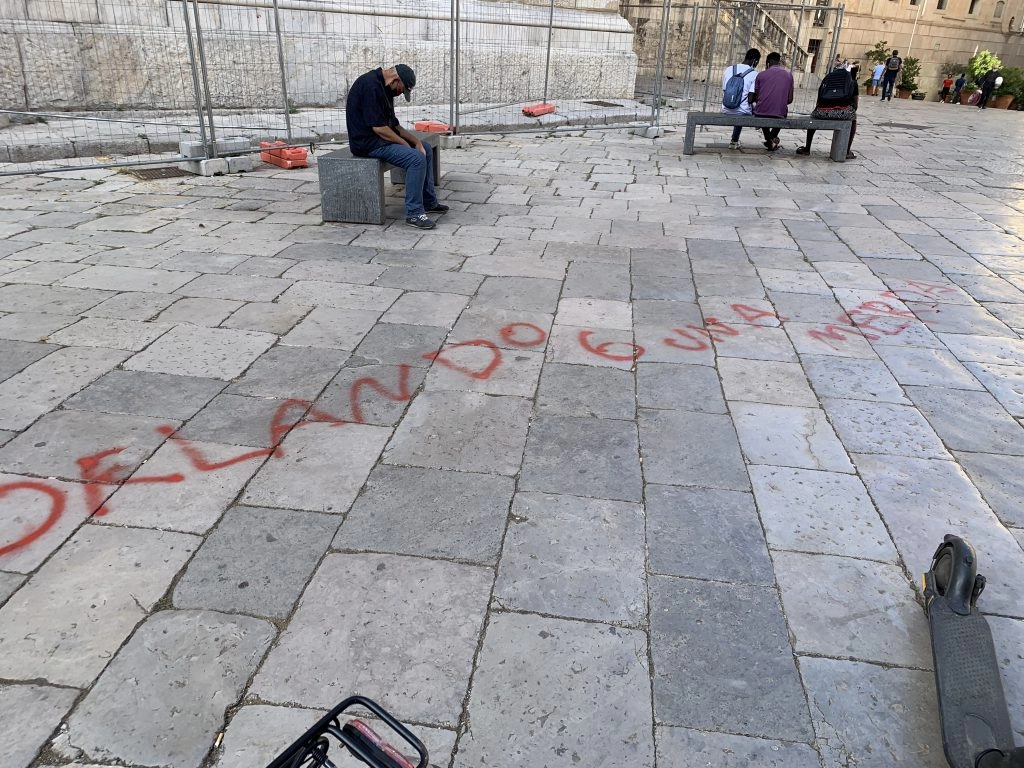 Altre ingiurie sono invece state scritte su una ruota del carro ad un passo dai Quattro Canti, che è stato danneggiato in più punti da vandali, di cui al momento non si conosce l’identità. Con ogni probabilità gli sfregi sono stati compiuti nella notte precedente al ritrovamento.