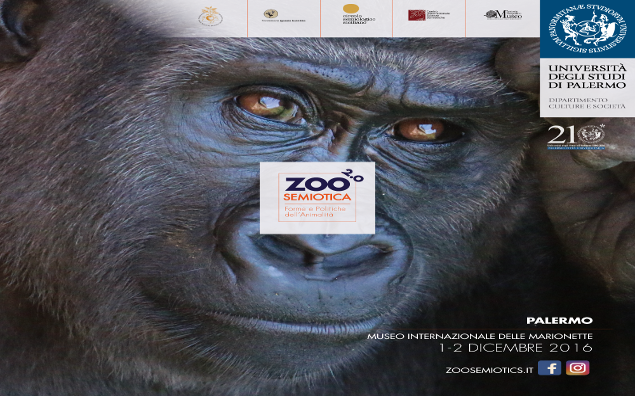 Si svolgerà l’1 e 2 dicembre al Museo internazionale delle marionette “Antonio Pasqualino” (piazzetta A. Pasqualino) il convegno Zoosemiotics promosso dall’Università degli Studi di Palermo, dall’Università delle Scienze Gastronomiche di Pollenzo, dal Centro Internazionale di Scienze Semiotiche di Urbino, dallo stesso Museo internazionale delle marionette, dal Circolo Semiologico Siciliano e dalla Fondazione Ignazio Buttitta.