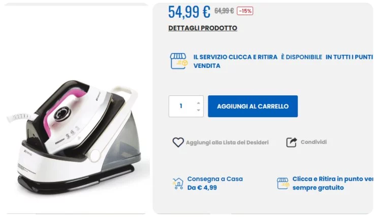 La piastra, realizzata in ceramica, è progettata per scorrere con facilità su ogni tipo di stoffa, minimizzando lo sforzo e migliorando la qualità della stiratura. Il tutto a un prezzo incredibile: solo 54,99 euro. L’acquisto è possibile sia online che con il servizio Clicca e Ritira.